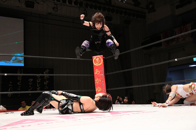 ショート動画:碁盤登場!! / 京子の雪崩式ブレーンバスター! / 宮崎のムーンサルト!