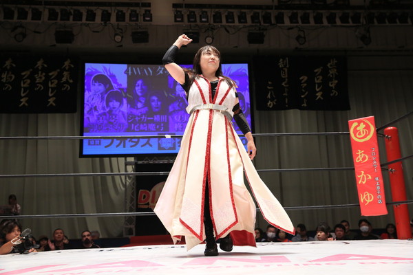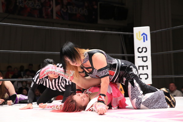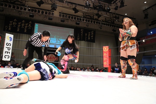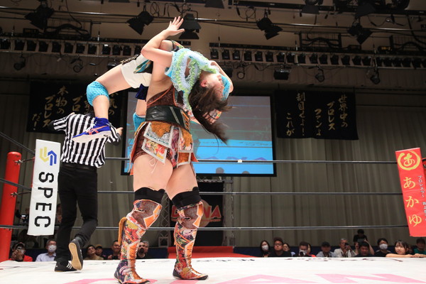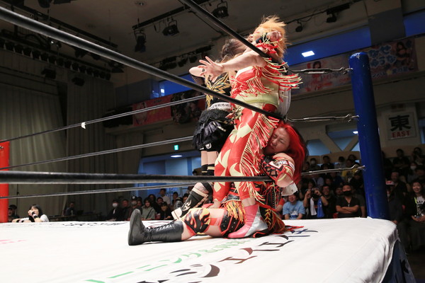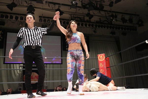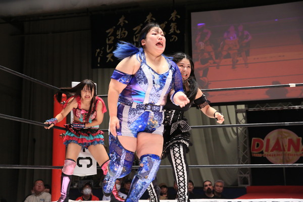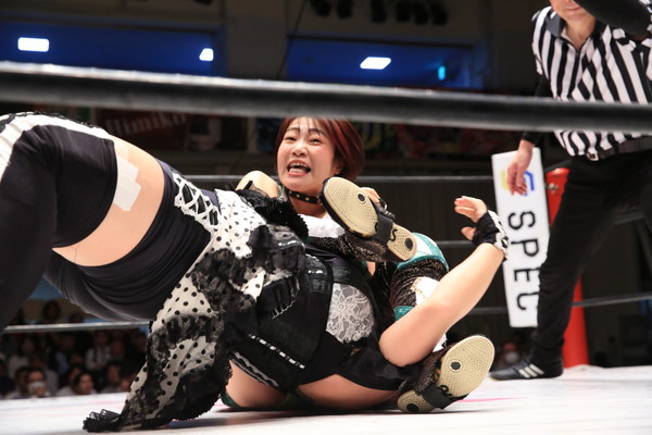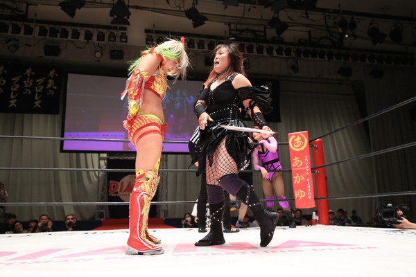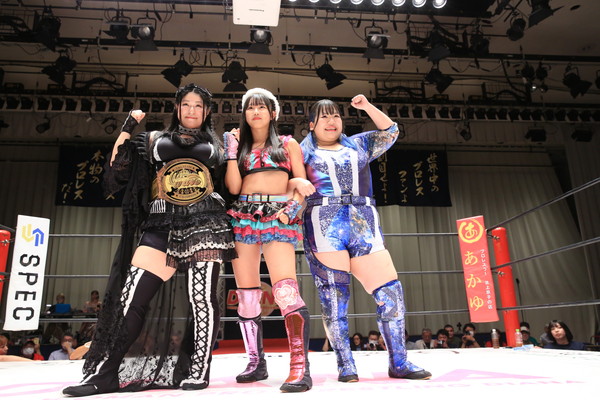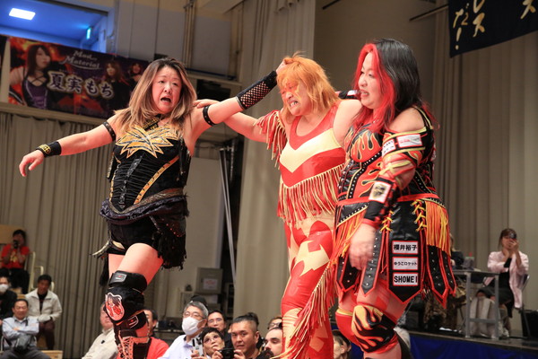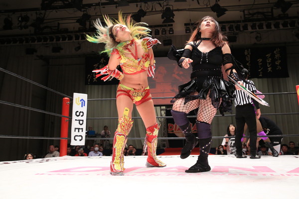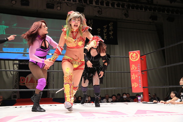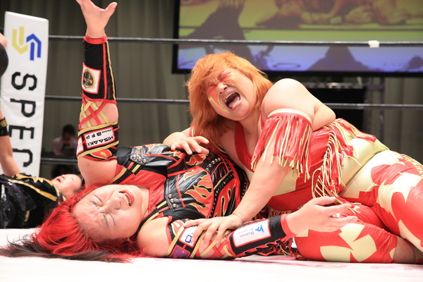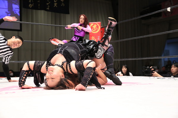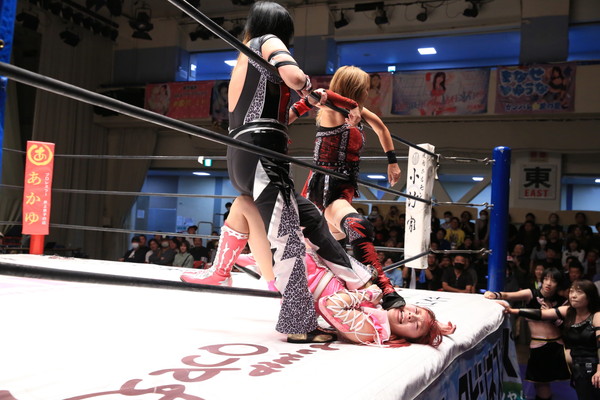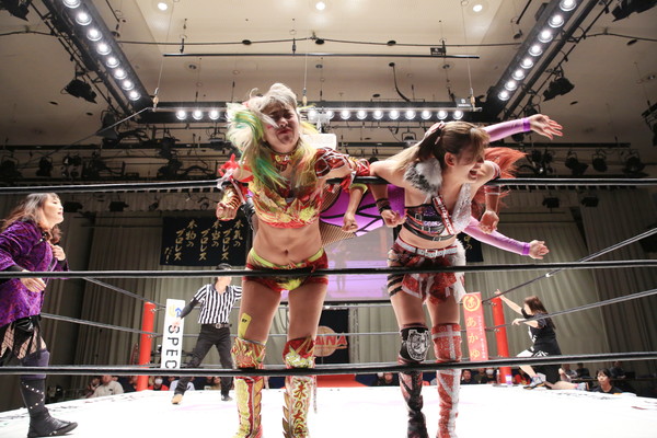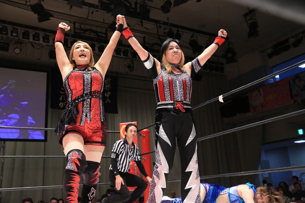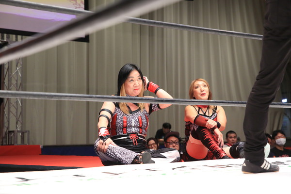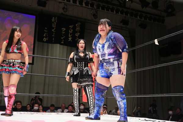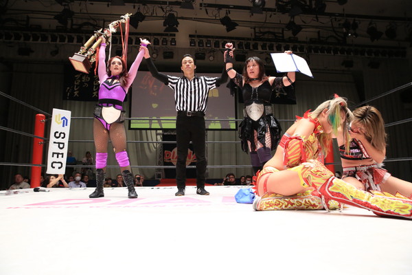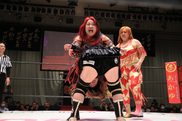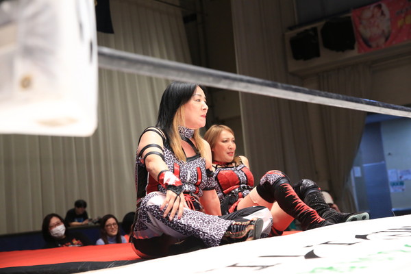 [王者組 カフェイン&クラッシュ]佐藤綾子&◯デビー・カイテル (22分1秒 片エビ固め) 梅咲遥&ウナギ・サヤカ●[挑戦者組 ちょぶき]