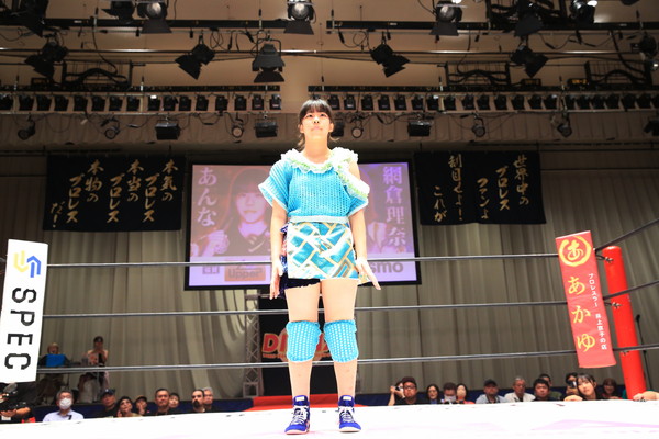 2度目のプロテストでは「感情が出ていない」と京子に指摘されていたAnnaだが、見違えるように大きな声で「お願いします!」と網倉に握手を求め、大声自慢の網倉も笑顔を見せる。ゴングが鳴るとロックアップからの押し合い。網倉のパワーには敵わないが、とにかく声を出して懸命に立ち向かう。ヘッドロックやキャメルクラッチでぐいぐい絞られ苦しみながらも、なんとか堪えるAnna。網倉が手荒いデビュー祝いで逆水平チョップをお見舞い。さらにヘアホイップでぶん投げる。やられっぱなしのAnnaだが、スクールボーイで反撃!そして3連続ドロップキック。デビューが決まるまでは受け身やロープワークを磨き、技はこの2週間の特訓で身につけたものだ。Annaは堂々とエルボーを打ち、クロスボディを浴びせる。Annaが「上げるぞー!」と宣言すると観客はどよめき、手拍子で後押し。しかし網倉の体は上がらず。網倉は軽々とAnnaを持ち上げ、ボディスラムでマットに叩きつける。Annaがフォールされると、井上京子らセコンドから「返せ!返せ!」の声が飛ぶ。返したAnnaは逆さ抑え込みやスクールボーイ、とにかく今できることを全力で網倉にぶつけた。Annaの頑張りに呼応してセコンド陣も「攻めろ!攻めろ!」とますますヒートアップ。Annaの全力を受け止めた網倉は逆片エビ固めでしっかりと腰を落とす。客席からはため息が漏れるが、音を上げず粘るAnnaに手拍子でエールを送る。Annaは京子や香藤ら先輩達の声に導かれ、ロープに向かって少しずつ近付いていく。ようやくエスケープしたAnnaだが、続くカナディアンバックブリーカーで激しく揺さぶられるとたまらずギブアップ。6分50秒、夢のデビュー戦終了のゴングが鳴った。