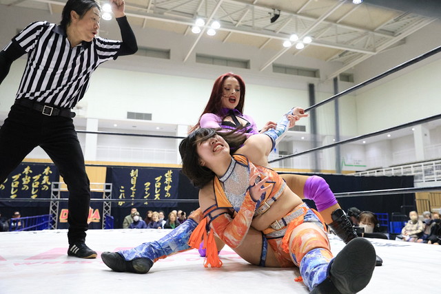 デビー・カイテル&●浦幌ちほ (11分59秒 片エビ固め)Himiko○ &真琴