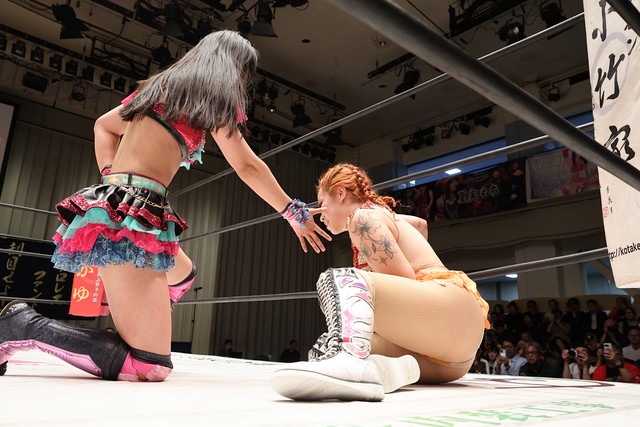 デビーはバックステージで「ふざけているの?ドロー?もし遥さんがこのベルトを狙っているつもりなら、勘違いするな。まずは自分のベルトをしかっり守ってから、私のベルトに挑戦するんだね!」と声を荒げて梅咲を挑発する。第23代王者は3.29新木場にて2回目の防衛戦、vs夏実もちが既に決定している。V2は“確定事項”としてその先の梅咲戦を見据えているようだった。京子も決めきれなかった悔しさを滲ませつつ、「ドローってことは挑戦してくるってことだと思う。できると良いと思います」と、社長として2人の再戦を後押しする。