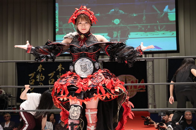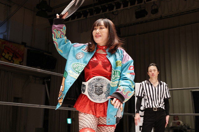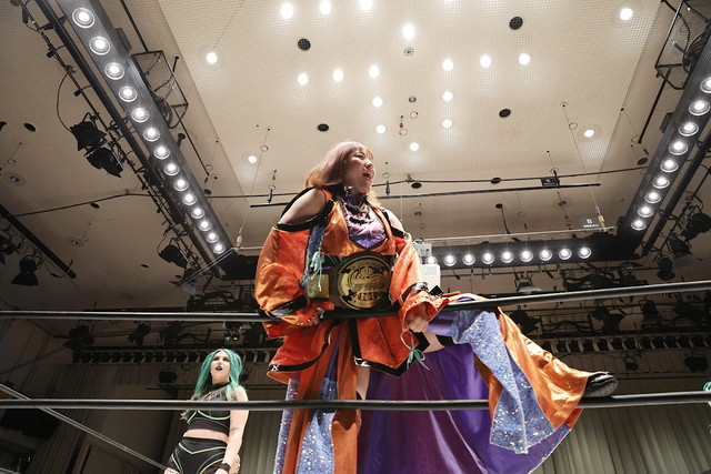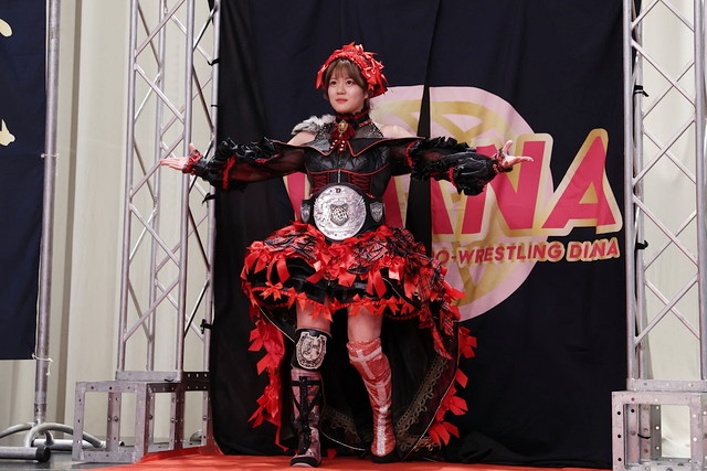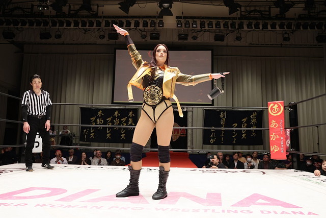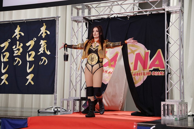 バックステージでは「二冠になりました!」と明るく笑顔を見せた新王者。「15周年、自分じゃない人がシングルを巻いてることがこんなにそわそわするんだな、と思ってた」と本音を漏らす。「ベルト巻いたからにはいろんな人とやっていきたい。絶対センター、ディアナからプロレス界に」と、“ディアナのセンター”から“プロレス界のセンター”へと、飛躍を誓った。