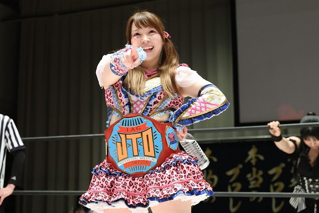 大会プロデューサーのナナミは、メインの熱戦を振り返り「同門対決で負けるのはリーダーとしても悔しいので、あーみんと勝てて嬉しい」と安堵。そして網倉の持つWAVEタッグベルトに言及する。「にじゅうまるで色んなタッグベルト狙っていきたい」とナナミが話すと網倉も「にじゅうまるをいろんな団体に広めたいので頑張っていきましょう」と今後は他団体出撃、そしてタッグ王座挑戦を視野に。戦えば最強のライバル、組めば最強の仲間。そんなTradition&Inherited、ユニット対抗戦の行方にも注目だ。