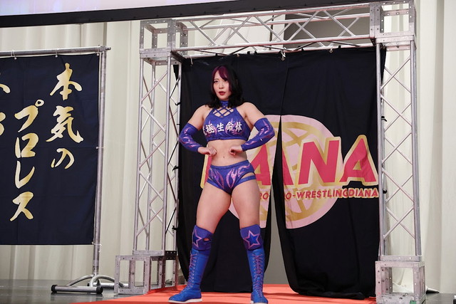 北都プロレスから修行に来ている浦幌ちほが今期ディアナラストマッチを向かえた。敵も味方も、女子プロレス界の力自慢が勢揃いだ。香藤は井上京子がCMキャラクターを務める、山形食品株式会社のスポーツ飲料「青鬼水」を持って登場し「これめっちゃおいしかったです。CM見ました?」とPR。今井レフェリーもカメラ目線で新商品をアピールした。対角の尾﨑も一口飲んで「おいしい」とは言ったものの「ユニットの宣伝してんじゃねーよ!」とようやくプロレスの試合開始。手四つからの力比べ、タックルでのぶつかり合いで火花を散らす。続いて浦幌が柊にエルボー乱打。しかしベテランの柊が体格と怪力を活かして試合を支配。香藤、柊、そしてなぜか尾﨑も加わって3人で浦幌を踏みつけ、香藤のヒップドロップに柊のフットスタンプの嵐。浦幌もタックルでようやく反撃し、命からがら青コーナーに帰還。エプロンでぐったりと倒れて動けない浦幌の敵討ちに尾﨑が飛び出す。柊がボディアタックやミサイルキックでリングを揺らし、尾﨑もアルゼンチンバックブリーカーでパワー全開!尾﨑がいい流れを作り、試合権は再び浦幌へ。尾﨑とのトレイン攻撃や連続セントーンで攻めていくが、ボディスラムは上がらず。柊の逆エビ固めの餌食に。苦しみながらもエスケープし、スクールボーイやRKO、尾﨑とのダイビングセントーン連発で柊に立ち向かう。これで浦幌がフォールすると香藤がカットし、T.Iも連続技で応戦。香藤のおまんじゅうプレスに柊のサンセットフリップ、そして柊の重戦車のようなキャノンボールで畳み掛ける。尾﨑のカットに救われた浦幌だが、柊がダイビングフットスタンプを投下すると万事休す。浦幌とは仲良しの香藤と初遭遇の柊から北海道に帰る浦幌へ、手荒い餞別だ。またディアナに来てくださいね!