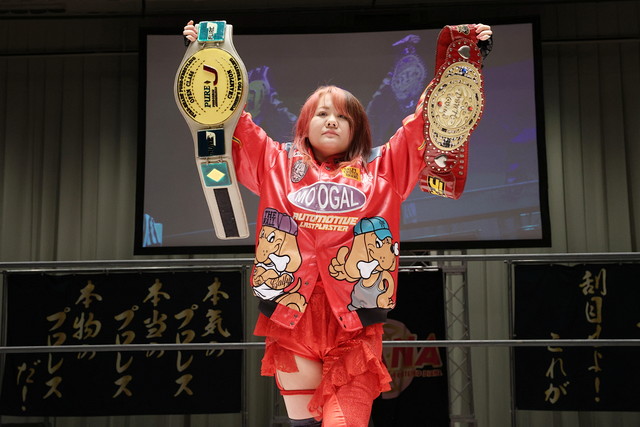 梅咲は「チャンピオンなのに最後決めきれないのはどっちも弱いと思うので。シングルやるならもちろんやりますよ。時間無制限で決着つくまでやればいいんじゃないですか」と完全決着を熱望。さらに「うちらでシングルかける日も…今年中にやらなきゃいけないんじゃない?今先頭に立たないといけないのは私とナナミ。ライバルだけど切磋琢磨していけたらと思います」と、こちらも戴冠後の青写真を描く。